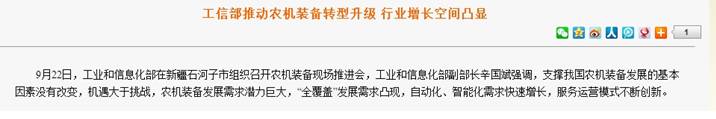 最近,工业和信息化部在新疆石河子市组织召开农机装备现场推进会。辛国斌副部长在会上传达了党中央国务院领导同志的重要批示指示精神,并就推进农机装备发展发表讲话。农业部、教育部、科技部、人力资源和社会保障部、海关总署、税务总局、质检总局等农机装备工作组成员单位代表,中国农机工业协会、中国农机化协会、中国农机流通协会等相关行业协会负责人,新疆维吾尔自治区、内蒙古自治区、吉林省等14个省(区)工信委等主管部门,以及农机行业企业和研究院所等代表共120余人参加了会议。